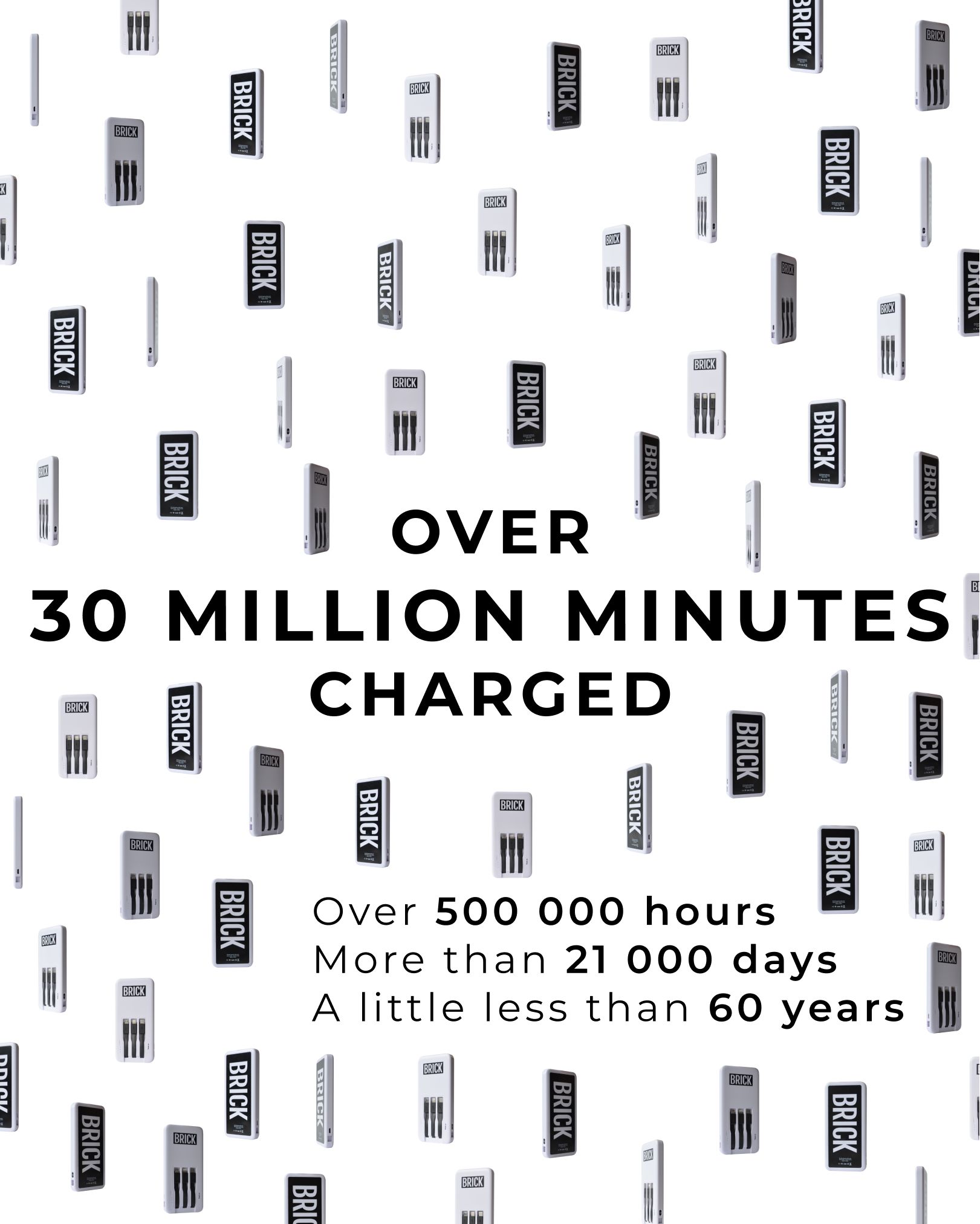 Brick had over 30 million minutes of charging in 2022! This means over 500 000 hours or a little less than 60 years of charging batteries.